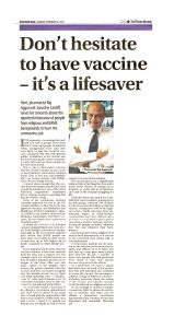 Don’t hesitate to have vaccine – it’s a life saver. Western Mail – Monday 8th February 2021