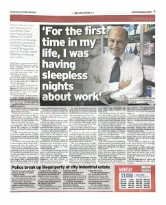 For the first time in my life I was having sleepless nights about work. South Wales Echo – Monday 8th June 2020