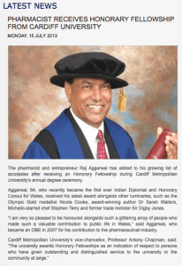 Pharmacist Receives Honorary Fellowship From Cardiff University. Pharmacy Business – Thursday 18th July 2013