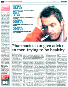 Pharmacists can give advice to men trying to be healthy. Western Mail – 14th June 2010