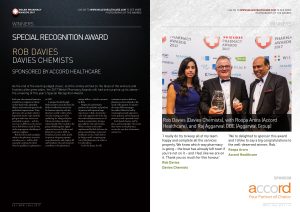 Special Recognition Award – Welsh Pharmacy Awards 2017. Wales Healthcare – December 2017
