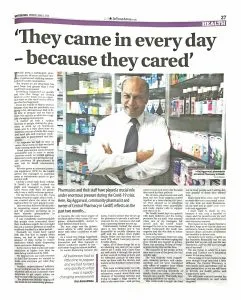 Unrelenting demand no PPE and staff driven to the point of exhaustion.A Pharmacists honest take on the pandemic. WalesOnline – Sunday 7th June 2020