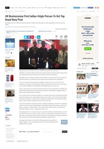 UK Businessman First Indian Origin Person To Get Top Royal Navy Post. NDTV – Monday 17th August 2018